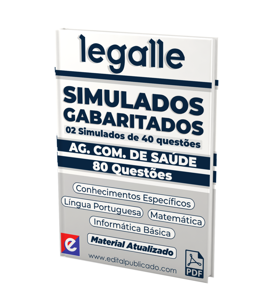 O material reúne 02 simulados com 40 questões cada, seguindo a dinâmica das provas aplicadas nos certames da banca legalle, totalizando 80 questões, sendo: