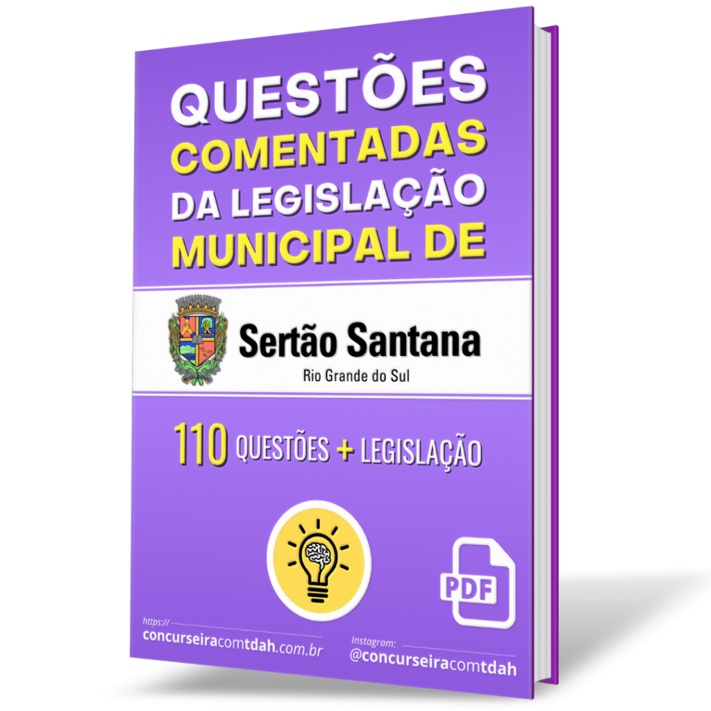 O material reúne uma lista de 110 questões comentadas sobre a legislação do município de Sertão Santana/RS, conforme Edital do Concurso Público nº 01/2025 da Prefeitura Municipal, organizado pelo Instituto Legalle.