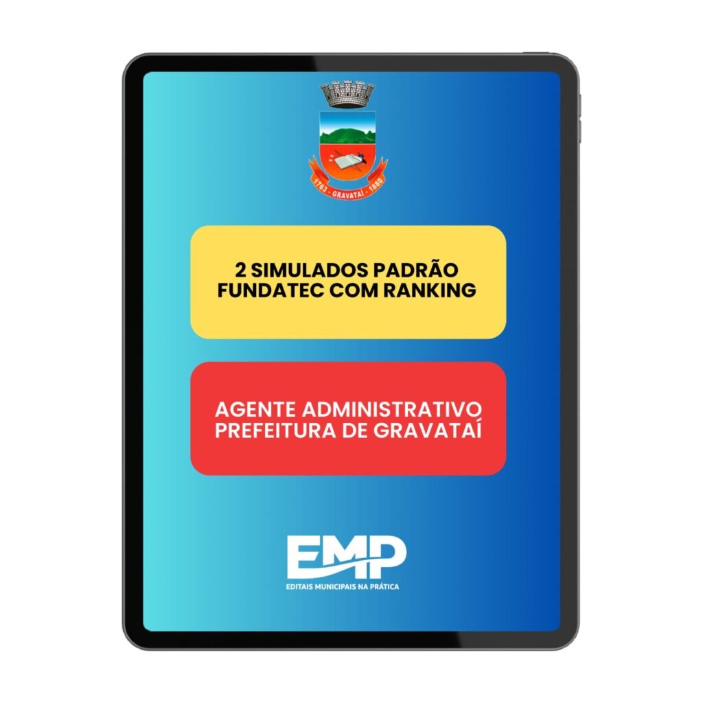 Este produto reúne 2 simulados completos e inéditos, desenvolvidos exclusivamente para candidatos ao cargo de Agente Administrativo II da Prefeitura de Gravataí.